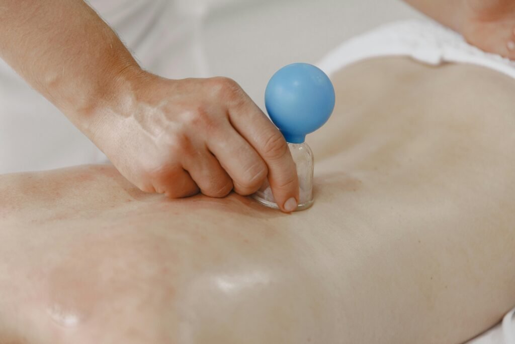Cupping massage, an ancient therapy that uses suction cups on the skin.